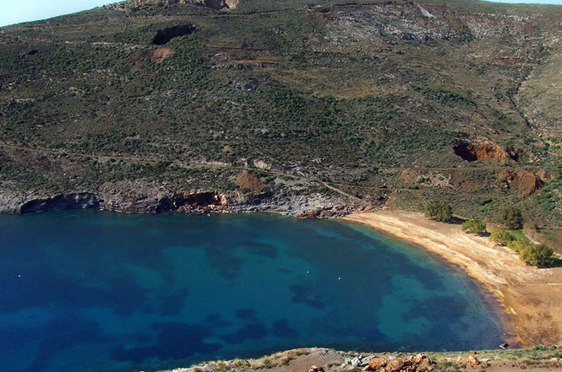 H τρίτη παραλία του όρμου του Κουταλά, μετά την Βαγιά και το Γάνεμα. Το τοπίο είναι πραγματικά πανέμορφο, καθώς εδώ μπορείτε να δείτε εγκαταστάσεις από τα μεταλλεία που λειτουργούσαν στην περιοχή. Πίσω από την παραλία υπάρχουν παλιά κτίσματα που εξυπηρετούσαν ανάγκες των μεταλλωρύχων. Ο βυθός στην αρχή έχει βότσαλα που σταδιακά δίνουν τη θέση τους στην άμμο ενώ το βάθος αυξάνει ομοιόμορφα.